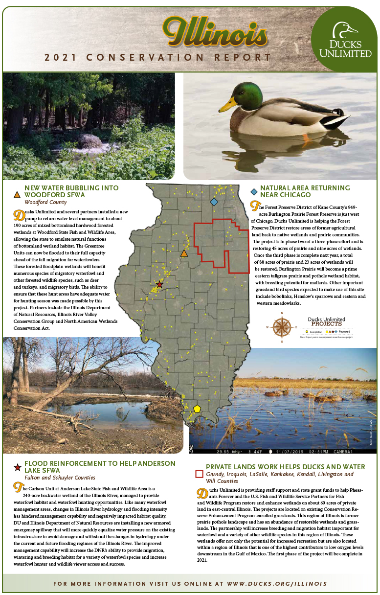 For a more updates, a complete report of 2020 activities and a look into what's planned for 2021 and beyond, see the Illinois' Conservation Report and visit https://www.ducks.org/Illinois.