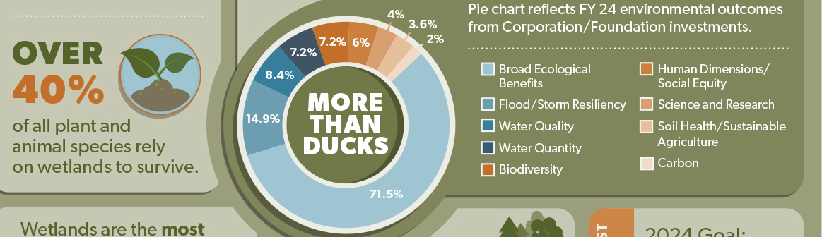 Wetlands conservation has a significant positive economic and environmental impact. See how many jobs are generated, greenhouse gas emissions are avoided and sediments captured through DU continental projects.